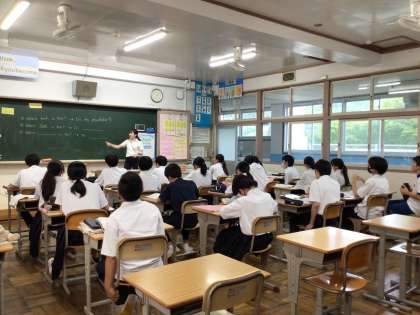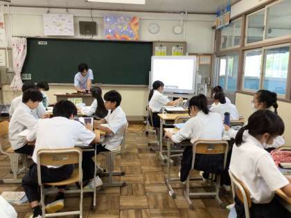 1年 授業の様子 公開日 2024/10/04 更新日 2024/10/04 各学年から 1A、数学の授業です。班で教え合って、学習を進めています。 1Bは英語の授業、先生の質問に元気よく答えていました。 1年