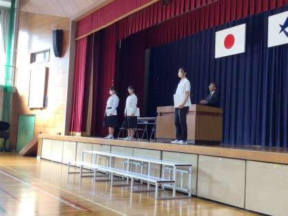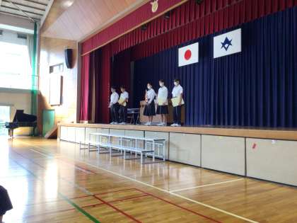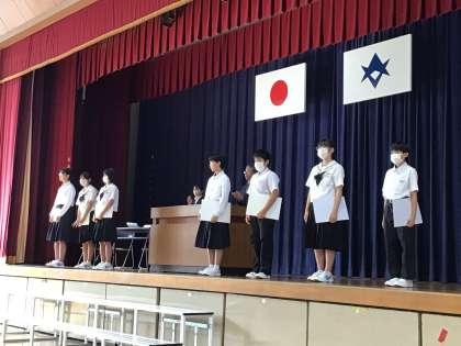 前期終業式 公開日 2024/10/11 更新日 2024/10/11 学校行事 最初に表彰がありました。 卓球女子、バレーボール部、バスケットボール部が表彰されました。続いて、豊田市の読書感想文、生活作文、詩のコンクールで入賞した人たちが表彰されました。 1年 2年 3年 特別支援学級