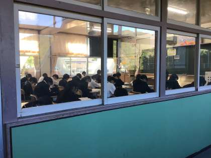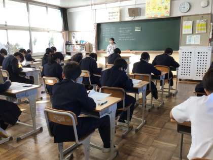 今日から後期中間テストです。1時間目の1年生の教室では、社会科のテストに真剣に取り組む様子が見られました。