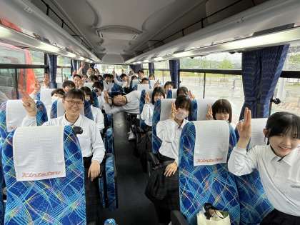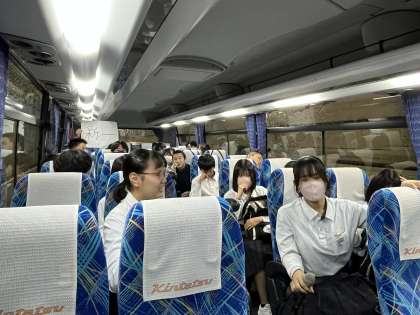 1号車では、漢字クイズやイントロドン、カラオケ大会などのバスレクで、和やかな時間を過ごしています。