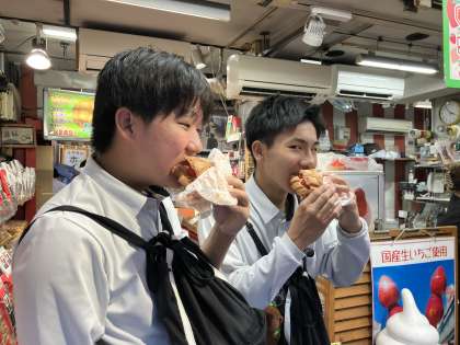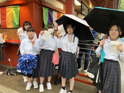 修学旅行 浅草散策 公開日 2025/06/03 更新日 2025/06/03 学校行事 浅草に到着し、仲見世商店街を散策しました。 雨天で傘をさしながらでしたが、生徒それぞれに食べ歩きやおみくじをして楽しみました。