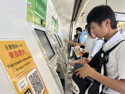 行き先ごとにグループに分かれ、電車を利用して都内を巡ります。