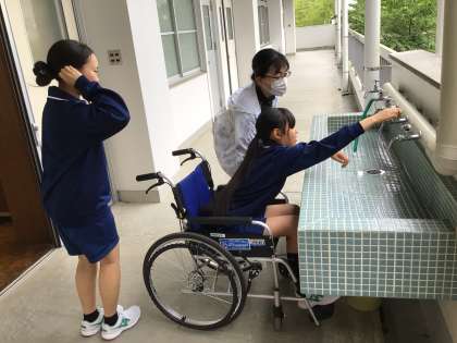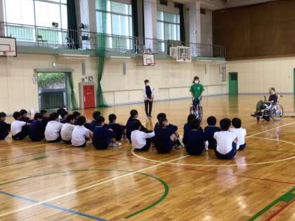 1年生 障がいを理解するための実践教室 公開日 2025/06/10 更新日 2025/06/10 学校行事 6月9日(月)1年生が総合的な学習の時間に「障がいを理解するための実践教室」を行いました。講師の方からのお話を聞いたり、車椅子体験、点字作成体験をしました。車椅子ユーザーや目が不自由な方の視点で、みんなが住みよい社会にするために何ができるかを考えました。