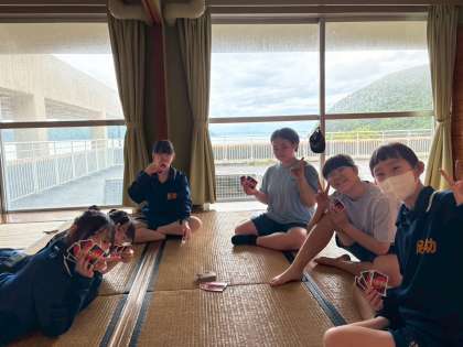 自然教室1日目 13 ベッドメイキング 公開日 2025/06/10 更新日 2025/06/10 学校行事 女子の部屋も早々とペットメイキングを済ませて、カードゲームをするなどしてゆったり過ごしています。 2年 行事