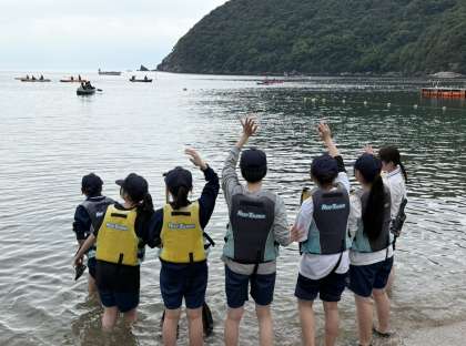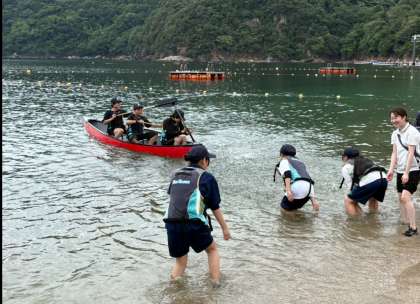 浜辺に戻ると先に帰ってきていた仲間から水かけの洗礼がありました。