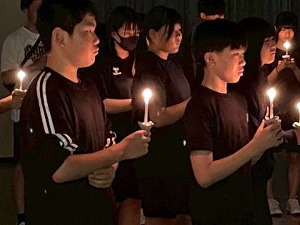 自然教室2日目 16 キャンドルサービス 公開日 2025/06/11 更新日 2025/06/11 学校行事 キャンドルの光に照らされた厳粛な雰囲気のもと、一人一人が自分を見つめ直し、これからの自分が頑張るべき目標を述べました。そして、学級としても、学年としての目標も。 学年合唱「unlimited」は、みんなで目標に向かってがんばろうという気持ちが一つになったかのように素晴らしい歌声でした。