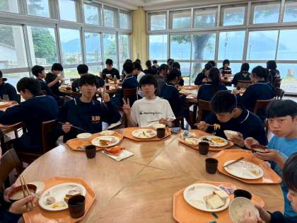 最終日の朝食です。みんな元気です! しっかり食べて、このあとの最後の活動ビーチコーミングも頑張ります!