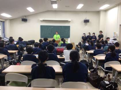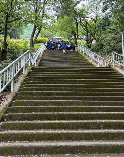 自然教室3日目 5 退所式 公開日 2025/06/12 更新日 2025/06/12 学校行事 退所式です。 所員の方からのお話を聞きました。 昨日のカッター訓練での頑張りを改めてお褒めいただきました。 この3日間で学んだことや、仲間とのつながりは、せひこれからの生活でも大切にしていきましょう。 さて、いよいよ施設を出発です。 心臓破りの大階段を登ったら、足助に帰るバスか待っています。