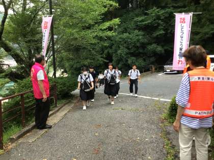 あいさつ運動 公開日 2025/07/02 更新日 2025/07/02 学校の特色ある活動 足助地区コミュニティ会議の安心安全部会のみなさんによる「あいさつ運動」が実施されました。 登校してくる生徒たちを校門坂で出迎え、「おはよう」と声をかけていただきました。