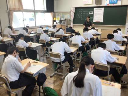 1・2年TCテスト、3年学習診断テスト 公開日 2025/07/10 更新日 2025/07/10 各学年から 今日は、全学年テストを行なっています。 1・2年生はTCテスト、3年生は第1回の学習診断テストです。 どのクラスもピリッと引き締まった空気の中で、真剣に問題に取り組んでいます。 3年生は午後まで続きますが、頑張ってください。