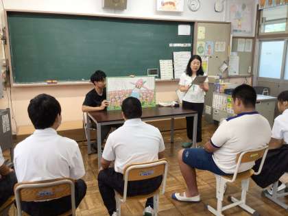 読み語り 公開日 2025/09/16 更新日 2025/09/16 学校の特色ある活動 9月11日(木)の朝の読書の時間、ボランティアの方による「読み語り」が行われました。敬老の日にちなんだ絵本や、紙芝居を読んでいただいた学級もありました。ボランティアの方々の感情のこもった読み語りに、物語に引き込まれていました。