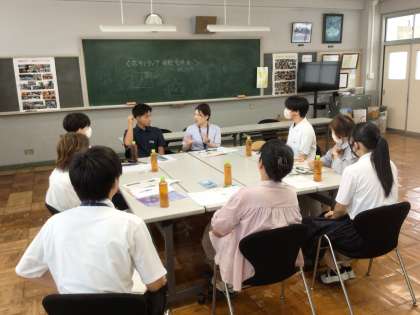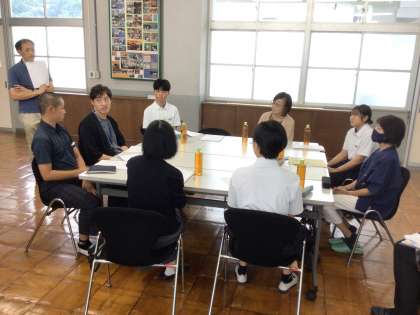 日頃足助地区を中心にボランティアをしている人と中学生とがグループに分かれてこれまでのボランティア経験やボランティアの意義などを話し合いました。中学生の意見や参加が大きな力となってありがたいと言っていただきました。