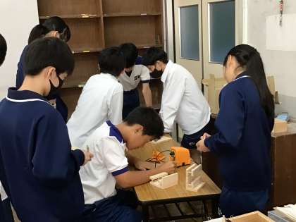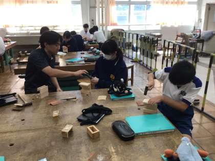 1年生 技術の授業 公開日 2025/09/26 更新日 2025/09/26 各学年から 1年生の技術科の授業です。木材を使った作品製作でペン立てを作成しています。しっかりやすりをかけて表面を滑らかにしたり、電熱ペンで名前を書いたり、オリジナリティがでています。