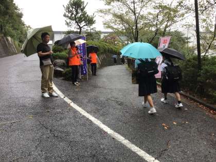 雨模様で肌寒さを感じる朝でしたが、笑顔で生徒を迎えてくださった部会の皆さんの「おはようございます」には「今日もがんばって」とエールをいただているようでした。