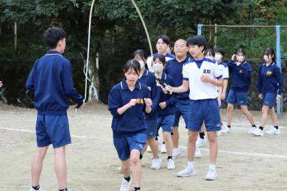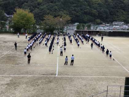 全校体育 公開日 2025/10/14 更新日 2025/10/14 特別活動 令和7年度の後期がスタートしました。 1時間目は、10日後に迫った体育祭に向けて全校練習がありました。 体育主任の先生から、体育祭についての話を聞き、開閉会式の流れを確認しました。 残りの時間で学級ごとに長縄の練習をしました。最初の頃よりタイミングを合わせるのが上手になってきていて、たくさん跳べるようになってきています。