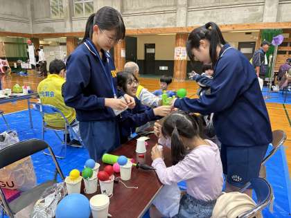 ふれあいまつり 公開日 2025/10/20 更新日 2025/10/20 学校の特色ある活動 昼前には天気も回復したくさんの方が来てくださいました。 ボランティアの中学生も楽しんで参加してもらえるようにがんばりました。 1年 2年 3年 特別支援学級 特色ある活動