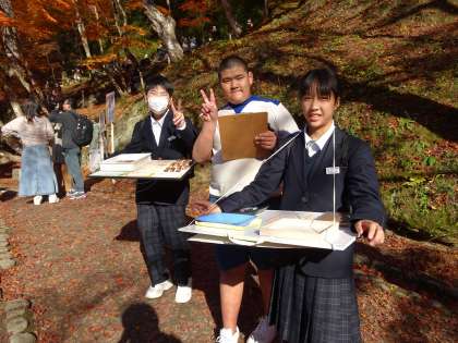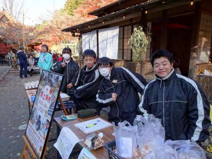 今日はEF学級の生徒たちが、香嵐渓で2回目の木工作品販売しました。紅葉が見頃を迎えていて、前回よりも多くの観光客の方がいる中で、張り切って呼びかけをしました。今日も保護者の方が応援に駆けつけてくださり、たくさんのお客さんが足を止めて購入してくださいました。接客や販売、お金の計算など多くの学びがありました。自分たちのがんばりが、香嵐渓の環境保全活動に役立つこともとても励みになっています。