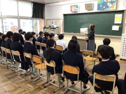 今朝は今年3回目の読み語りがありました。それぞれの教室で、ボランティアの方々から絵本の読み聞かせや、語りを聞かせていただきました。とても表現豊かな語りに生徒は引き込まれていました。
