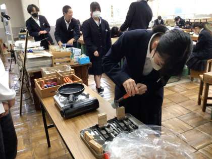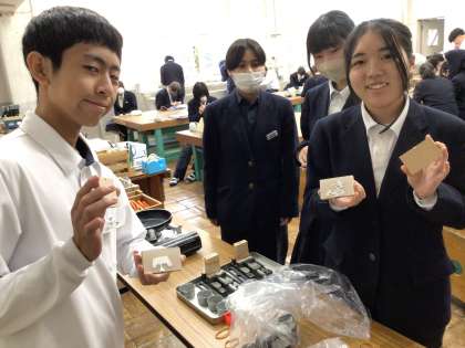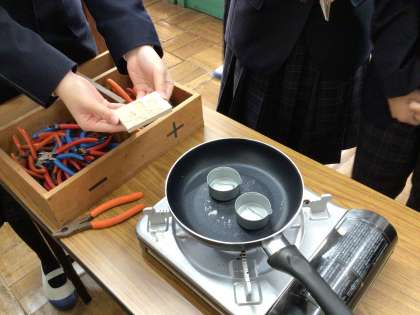 3年生の技術科の授業では金属加工の鋳造を行っています。