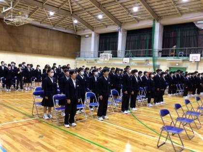立志式予行練習 公開日 2025/12/04 更新日 2025/12/04 学校行事 5時間目に立志式の予行練習を行いました。 主役の2年生がいない中で、1,3年生が立志式の流れを確認し、動きの練習をしました。みんなで合わせての練習はこの1回だけです。ほとんど練習なく式当日を迎える2年生を支え、自立に向けて一歩踏み出せる式になるよう、全校で作り上げましょう。