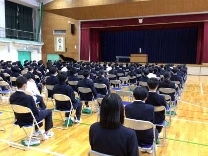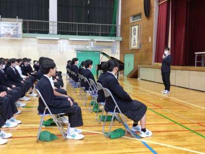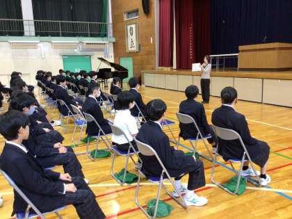 冬休み前全校集会 公開日 2025/12/23 更新日 2025/12/23 学校行事 校長先生からは、健康に気を付けて過ごしてほしい、自分の好きなことに没頭して取り組んでほしい、家族との時間を大切に過ごしてほしいと冬休みの過ごし方についてお話がありました。 そのあと、担当の先生から冬休み中のSNSの使い方や健康に過ごすためのポイントについて話がありました。 冬休みは短いですが元気に有意義な時間を過ごしてくださいね。そして、年明けの1月7日にまた元気に会いましょう。
