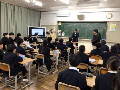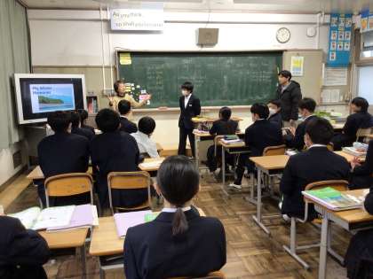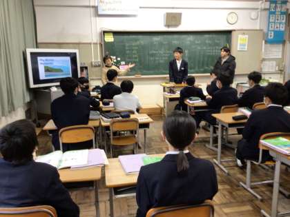 1年生 英語の授業 公開日 2026/01/14 更新日 2026/01/14 各学年から 1月13日(火)1年生の英語の授業の様子です。今日はALTの先生も一緒です。題材は「My Winter Memories」。 「I went to 〜(思い出の場所)」「I ate 〜(食べたもの)」など、冬休みの思い出を英語で発表しました。楽しく友達の思い出を聞いています。