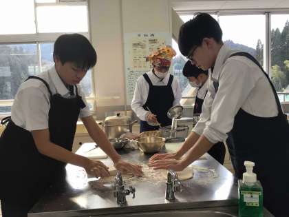 1月15日(木)2年生が家庭科の調理実習でうどんを作りました。