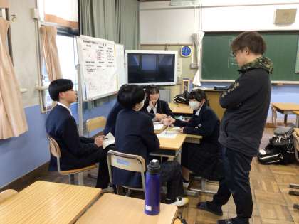 1・2年生は、今の生活を振り返り、学年として改善するべきところ、次年度に向けて力をつけなくてはいけないことを話し合っていました。