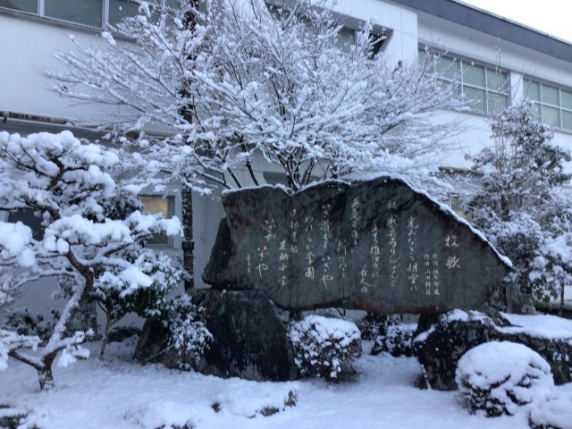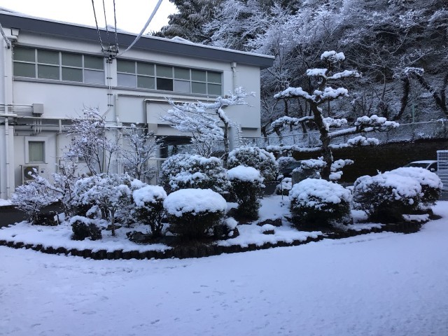 今朝は久々に雪がしっかりと降り、足助の山も街も運動場も真っ白です。でもとてもきれいです。