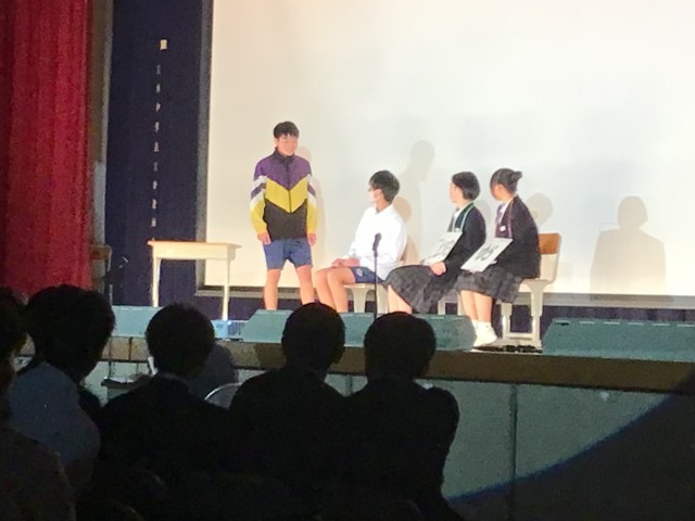1,2年生がチームで考えたゲームやクイズ、劇などで3年生は中学校3年間の思い出を振り返りました。