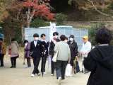 EF学級と3年生がコースターやキツネノカミソリ販売を香嵐渓で行いました。呼び込み...