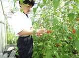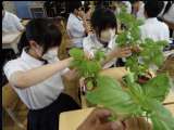 今日の給食の献立の「大葉あえ」は、2年生とEF学級の生徒が育てた大葉を収穫し、給...