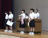 1時間目に夏休み前の全校集会がありました。 まず最初にライオンズカップバレーボー...