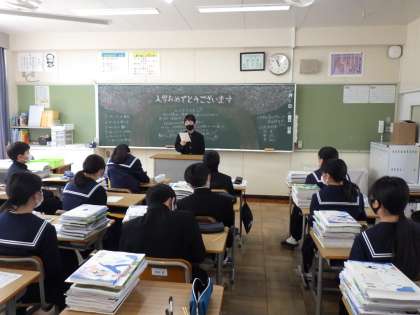 1年生は、自己紹介カードを書いたあと、ひとりひとりが教室の前に出て自己紹介をしました。