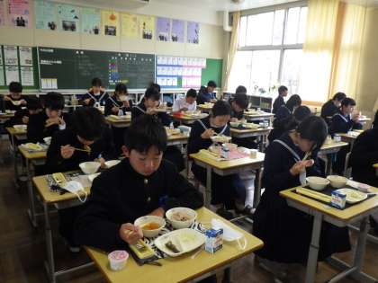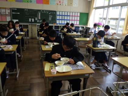 給食の風景を撮影しようと各教室を回りましたが、どの教室も見事に黙食が守られていて、感心しました。