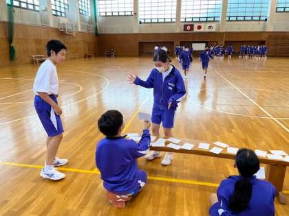 宿泊学習最後の活動は、各クラスのリーダーが考えた学年レクリエーションです。