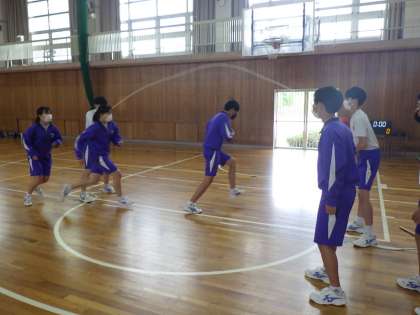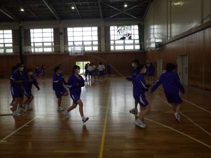 3年生の体育では、5月21日に予定されている体育祭に向けて、長縄で「八の字跳び」の練習をしています。