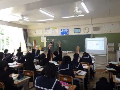 「一番、面積の大きな国は?小さな国は?」との先生の問いにたくさんの挙手があり、活発な意見交換が行われていました。