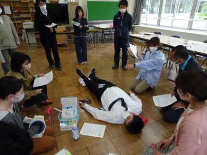熱中症ガイドラインの確認をして、シミュレーション研修を行いました。