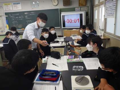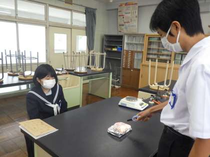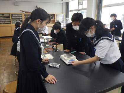 金属の燃焼実験(2年生理科) 公開日 2022/05/13 更新日 2022/05/13 校長室から 2年生の理科では、「マグネシウムの燃焼」の実験を行いました。 燃焼する前の質量と比べて燃焼後の質量を比べてみると、なんと燃焼後の質量が増えています。 「不思議だね」と声をかけると、生徒たちも「???」の表情です。 でも、中には「そっか、酸化したらからだ」と答える子がいました。かしこい!