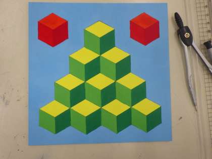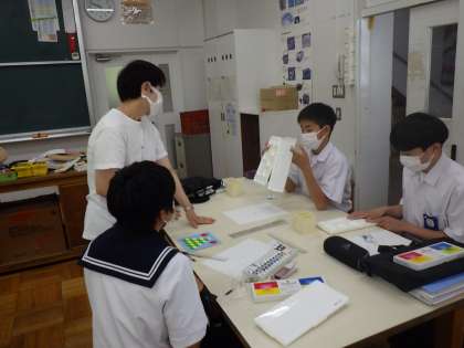 図形を重ねて(2年美術) 公開日 2022/05/27 更新日 2022/05/27 校長室から 2年生の美術では、1つの図形を重ね合わせて、幾何学模様をつくり、着色する学習をしています。 コンパスで円を描いたり、立体の模様を描いたりして、素敵な下絵ができました。 このあとは、絵具を使って着色していきます。 一番上の写真は、美術の先生がつくった見本です。さすがですね。