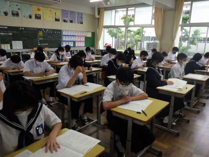 テスト1日目(2年生) 公開日 2022/05/31 更新日 2022/05/31 校長室から 2年生の教室のテスト1日目の風景を撮影しました。 3時間分のテストが終わると、ほっとした空気が流れましたが、まだ明日があるので気はぬけません。 「今日の午後はテスト勉強だね」と声をかけると「いやーそれが家に帰ると寝ちゃうんですよー。」と返事が返ってきました。 昨日がんばったのかな?あとひと踏ん張り頑張ってください。