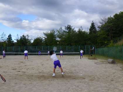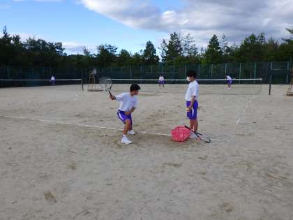 テニス部では、学年別に分かれ、それぞれの課題の練習をしていました。