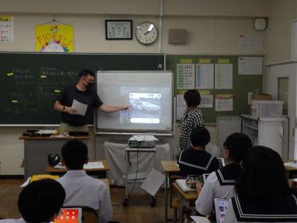 「お気に入りの人を紹介しよう」という題で、タブレットで自分の紹介したい人を検索し、This is 〜と紹介をします。
