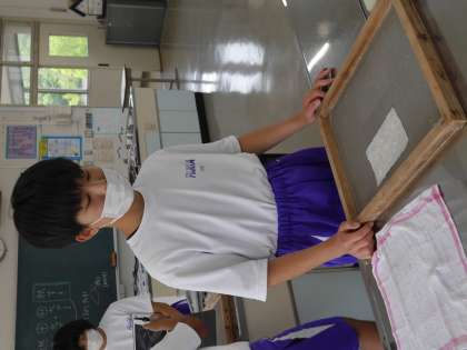 1・2学級では、牛乳パックを使った紙すき体験をしました。