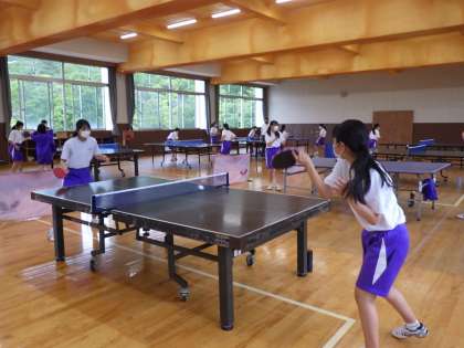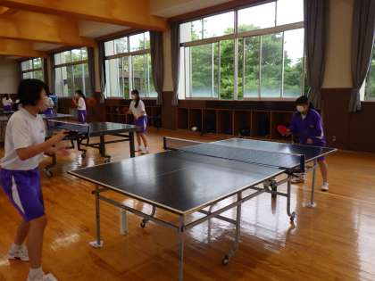 部員の人数に対して卓球台が十分にあり、広いスペースでよい練習環境が整っています。