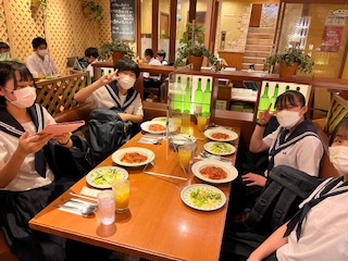 早速、学級別に昼食です。レストランは貸し切りで申し訳ないぐらいです。