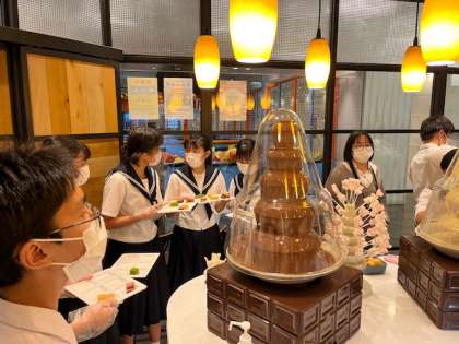 クラス別ツアーの後、お台場に全学級集合しました。アクアシティお台場の6Fのレストランでレインボーブリッジ眺めながら、贅沢なビュッフェで夕食を堪能しました。