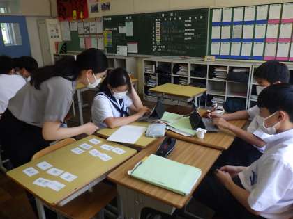 ある班では、「予想」と「予測」の意味をタブレットで調べて、意味の違いを考えながら、短文を作っていました。