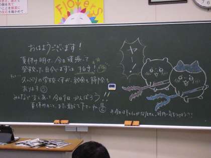 みんな元気だっだ? 公開日 2022/09/01 更新日 2022/09/01 校長室から 9月1日です。 夏休みが終わり、学校が再開しました。教室では、友達との再開を喜ぶ顔が多くみられました。 1時間目は、夏休みの生活を振り返る学級活動を行いました。 リズムを作るまでに少し時間がかかるかもしれませんが、規則正しい生活を心がけ、学校生活に早く慣れてほしいと思います。